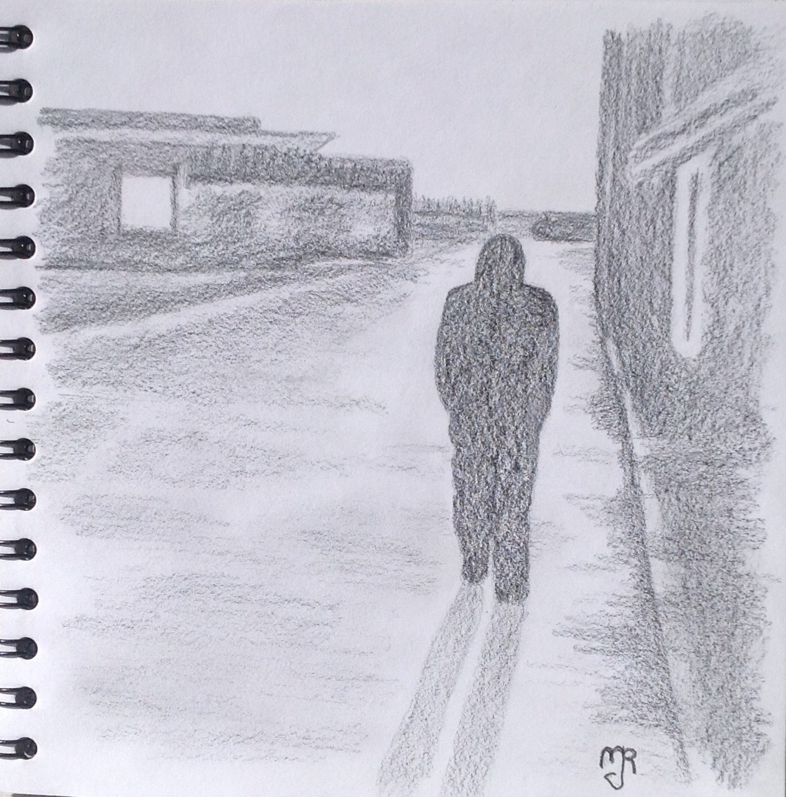 Este dibujo esta basado en una fotografía de Roberto Cabral. No tiene por que ser sólo un dibujo triste, según se mire,  también es un canto a la esperanza.
