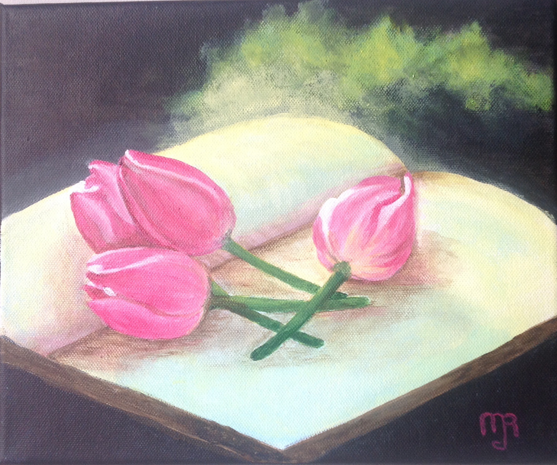 ¡Ah! los tulipanes sobre el libro son preciosos.